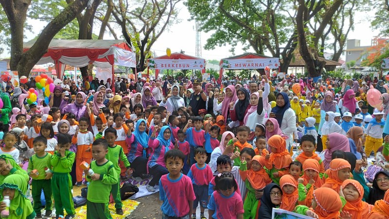 Kegiatan tersebut diikuti siswa siswi Pendidikan Anak Usia Dini (PAUD) dari 61 lembaga layanan pengasuhan Taman Penitipan Anak (TPA) sejumlah 1500 peserta didik dan 300 pendidik se Kota Madiun.
