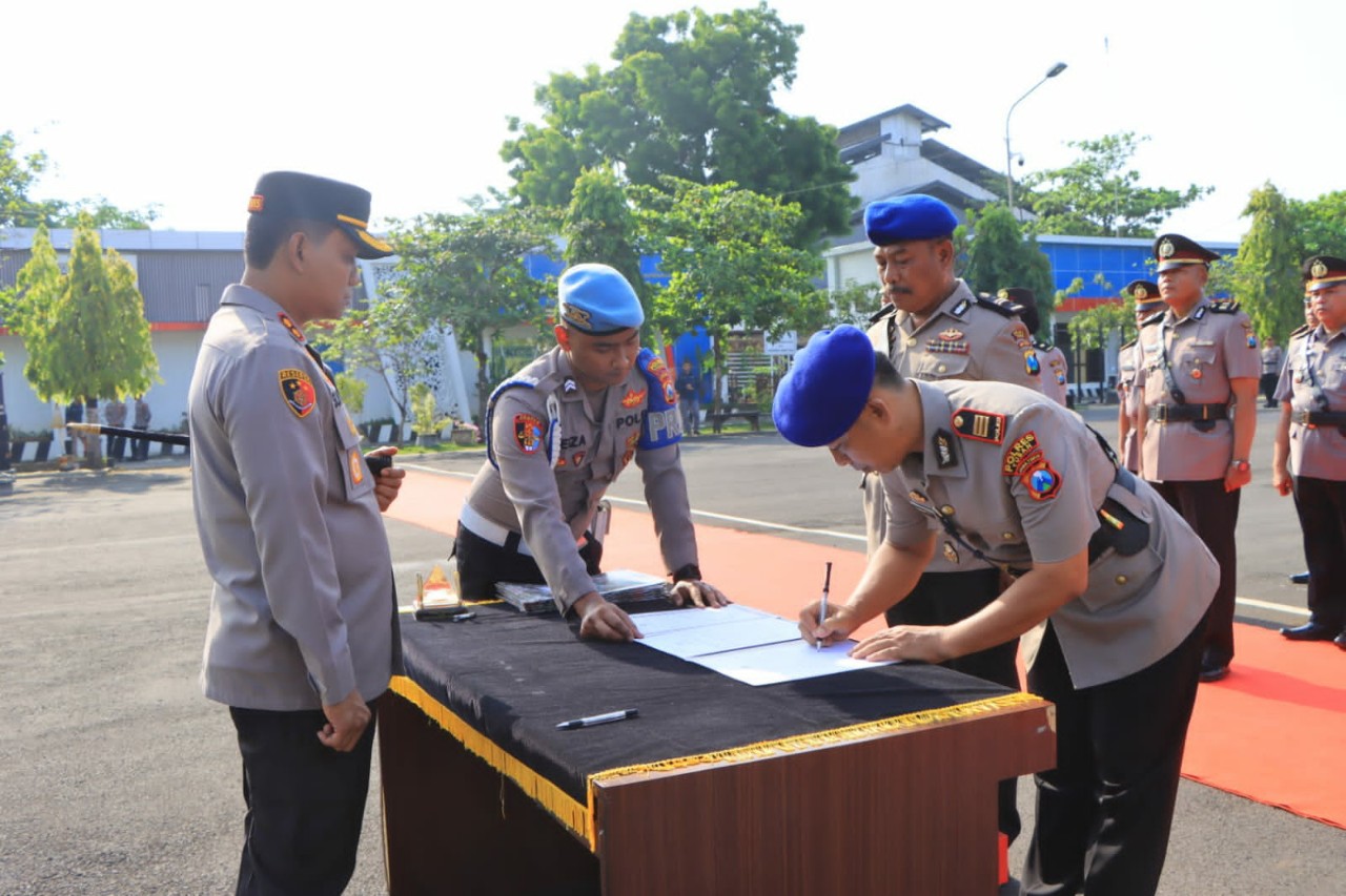 Upacara serah terima jabatan dilaksanakan di lapangan Apel Polres Tuban di pimpin oleh Kapolres Tuban AKBP Suryono, Kamis pekan ini