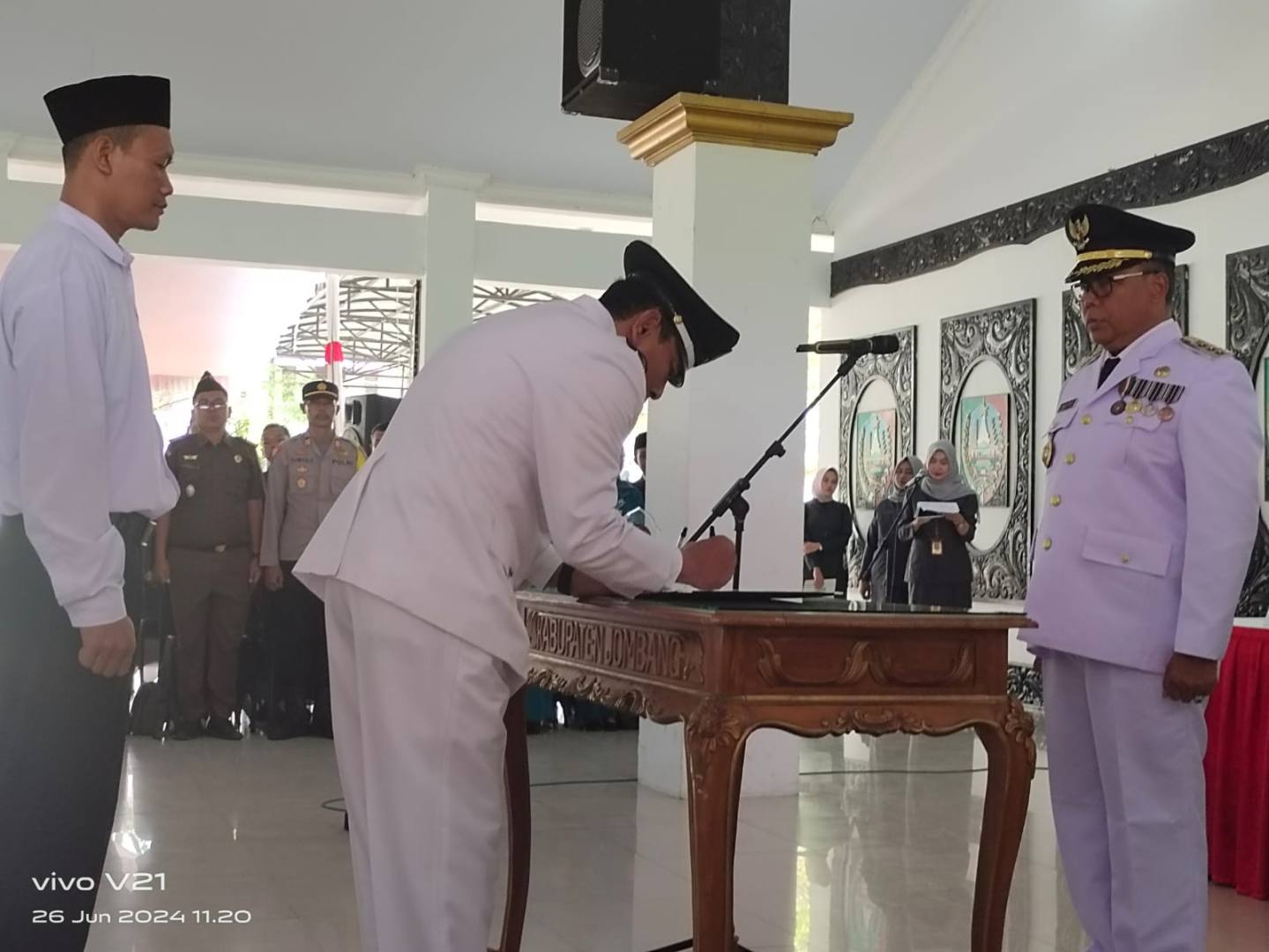 JATIMPOS.CO/JOMBANG - Hari kedua giliran di Kecamatan Bandarkedungmulyo dan Kecamatan Ploso yang ketempatan acara Pengukuhan dan Penyerahan SK perpanjangan masa jabatan Kepala Desa (Kades) dan Badan Permusyawaratan Desa (BPD), Rabu ( 26/6/2024).