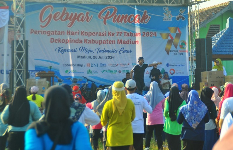 Sementara itu, Ketua Panitia Hari Koperasi Ke-77, Purnomo menyampaikan, bahwa kegiatan puncak peringatan Hari Koperasi ke-77 yang diselenggarakan ini selain diikuti masyarakat juga dimeriahkan oleh gerakan koperasi di Kabupaten Madiun.