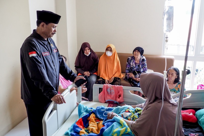 JATIMPOS.CO/KOTA MADIUN – Calon Wali Kota Madiun nomor urut 2, Maidi menjenguk warga Kota Madiun yang tengah dirawat di Rumah Sakit (RS) Griya Husada Madiun, Senin (7/10/2024).