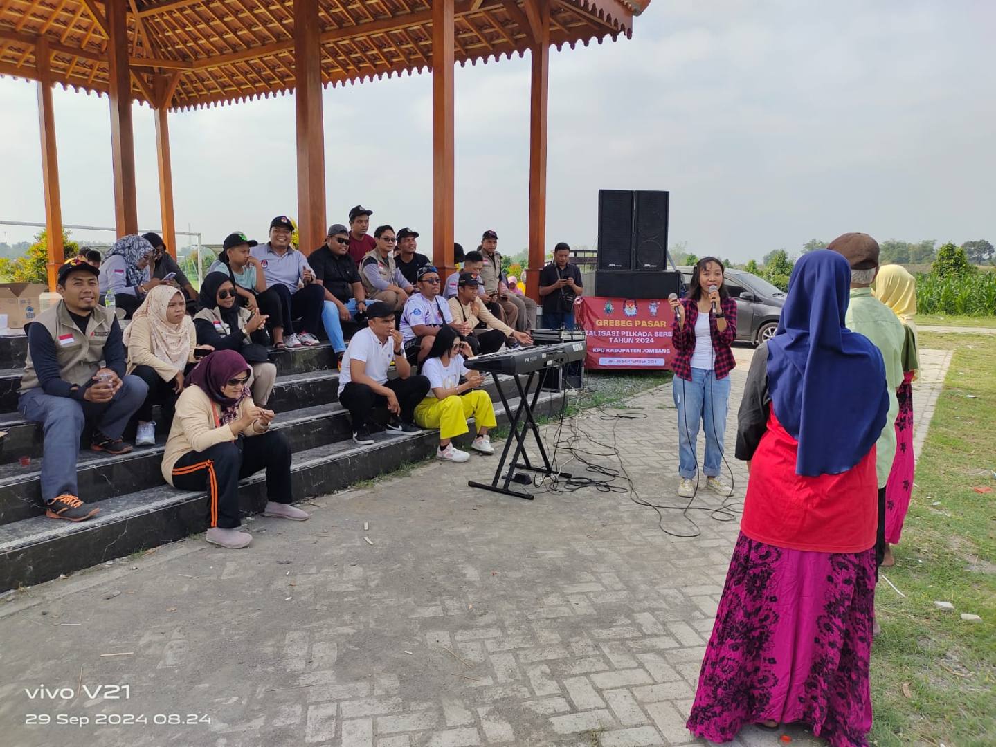 Hal itu disampaikan Komisioner KPU Jombang, Ayatulloh Kumaini, "Komisi Pemilihan Umum Kabupaten Jombang lakukan sosialiasi Pilkada 2024 ke masyarakat dengan menggelar ‘Grebeg Pasar’ yang di lakukan di 21 Kecamatan di Kabupaten Jombang pada 29-30 September 2024 dengan harapan angka partisipasi pemilih bisa meningkat 90 persen," ungkap Ayatulloh, Senin (30/09/2024).