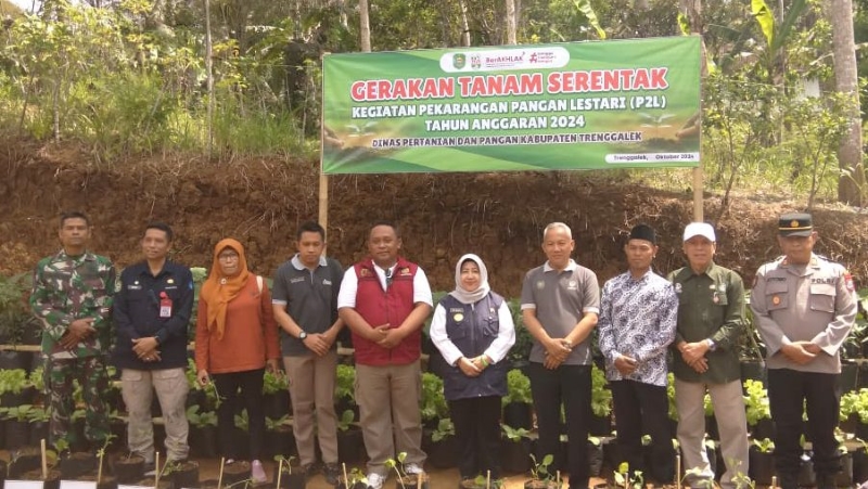 JATIMPOS.CO//TRENGGALEK - Untuk memperkuat ketahanan pangan dan meningkatkan kesejahteraan masyarakat, TNI bersama Pemerintah Kabupaten Trenggalek menggelar aksi tanam serentak melalui program Pekarangan Pangan Lestari (P2L) di Desa Siki, Kecamatan Dongko, pada Jumat (11/10/2024).