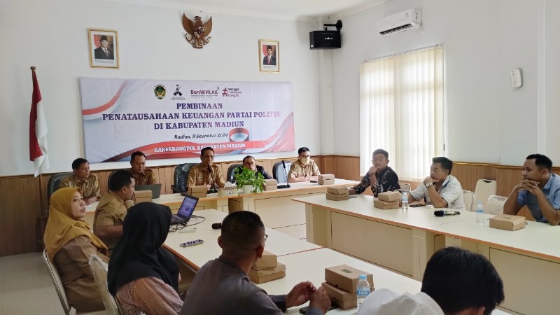 JATIMPOS.CO/KABUPATEN MADIUN - Badan Kesatuan Bangsa dan Politik (Bakesbangpol) Kabupaten Madiun menggelar pembinaan penatausahaan keuangan Partai Politik (Parpol) di Kabupaten Madiun pada Senin (9/12/2024).