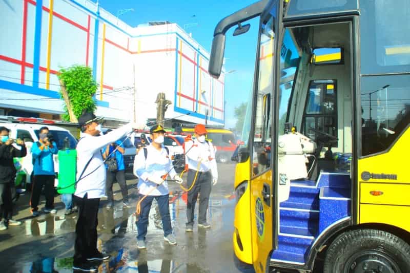 " Pada hari ini kita bersama Forkopimda, OPD, Tim Gugus Tugas dan Direktur RSUP dr. Soedono melakukan penyemprotan desinfektan pada fasilitas umum semuanya, seperti Bus Sekolah, angkutan umum, Masjid dan Gereja, " ucap Wali Kota Madiun, Maidi.