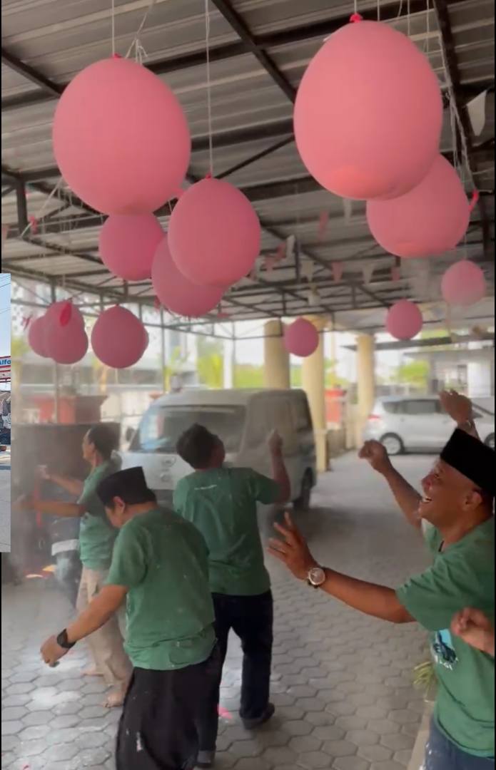 Momen paling dinanti pun hadir saat puluhan balon yang tergantung di sekitar sekretariat satu per satu diletuskan. Setiap balon berisi tepung dan sejumlah uang tunai mulai dari Rp5.000 hingga Rp100.000. Suara letusan balon yang terdengar bersahutan disambut dengan tawa dan sorak sorai para peserta yang berlomba mengumpulkan hadiah.