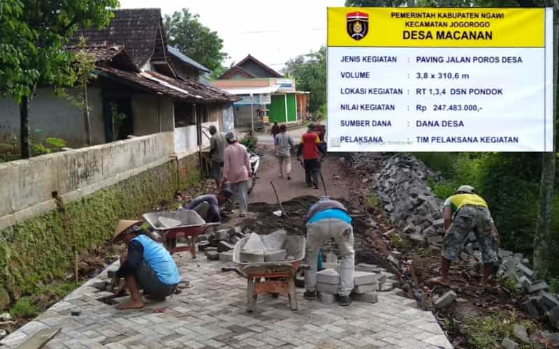 Salah satunya seperti yang dilakukan oleh Pemerintah Desa Macanan Kecamatan Jogorogo Kabupaten Ngawi. Tahun 2020 ini, desa tersebut merealisasikan DD lebih fokus pada pembangunan jalan pemukiman.