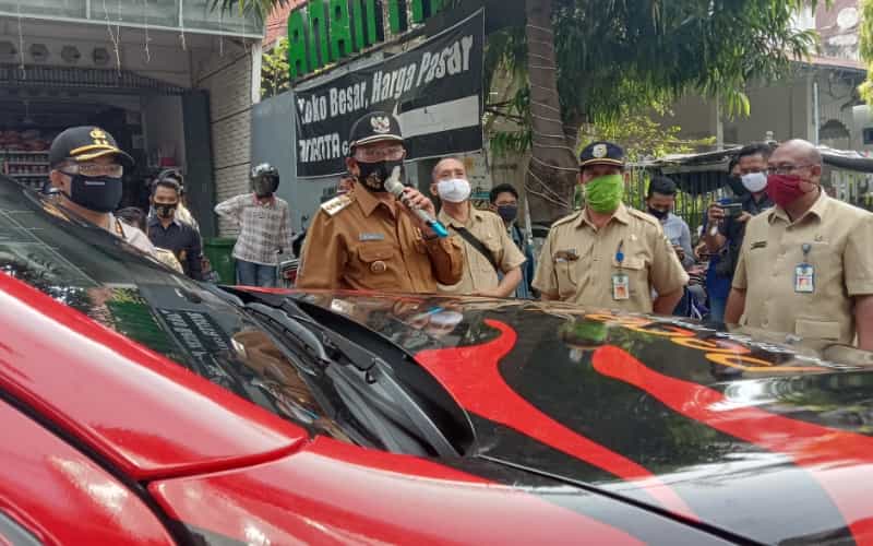 " Saya mohon maaf saya tegasi karena corona harus kita lawan bersama, saya ingin pasar tradisional ini sehat. Apalagi menjelang hari raya, pedagang dan pembelinya sehat, pasarnya rame, aman terkendali, " tegasnya.