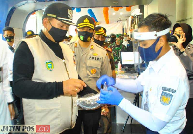 Wali Kota Madiun bersama Forkopimda melakukan simulasi protokol kesehatan di Stasiun Madiun