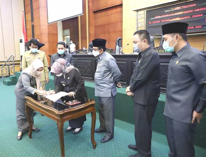 JATIMPOS.CO//JOMBANG- Akhirnya Sidang Paripurna Dewan Perwakilan Rakyat Daerah Kabupaten Jombang pada Rabu (19/8/2020) di Gedung DPRD Kabupaten Jombang.menetapkan 3 (tiga) RAPERDA Kabupaten Jombang 2020.
