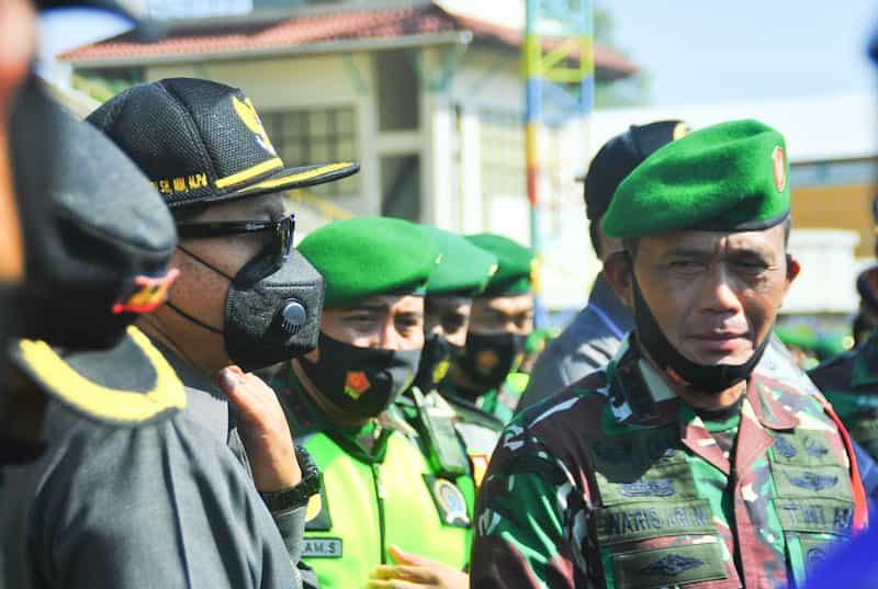 Lebih lanjut dia katakan, sesuai tugas dan tanggung jawab TNI, diperbantuan kepada Pemda untuk bersinergi secara bersama – sama menangani Covid – 19 dan ikut mendisiplinkan protokol kesehatan.