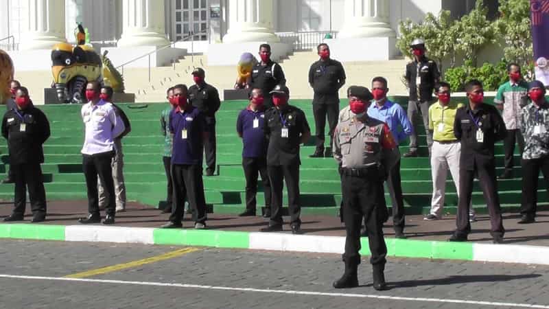 JATIMPOS.CO/BATU - Launching Penegak Disiplin Protokol Kesehatan Berbasis Komunitas Pariwisata dan Lingkungan serta Mobile Covid Hunter Pariwisata, Selasa (29/9/2020), di halaman parkir Jatim Park II Kota Batu.