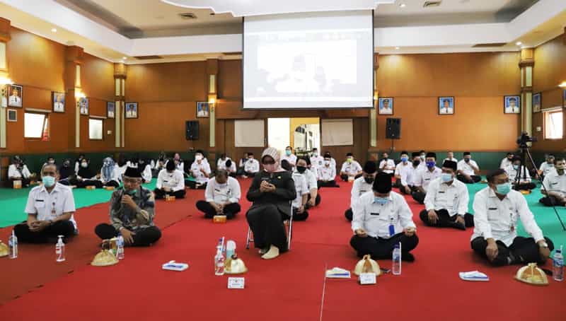 JATIMPOS.CO/JOMBANG - Meski masih dalam suasana Pandemi Covid-19, namun tak menyurutkan semangat para Aparatur Sipil Negara (ASN) Pemkab Jombang untuk menuntut ilmu. Kegiatan dalam rangka memperkuat silaturahmi dan wadah belajar serta pembinaan mental spiritual bagi para ASN di lingkungan Pemkab Jombang kali pertama ini digelar secara terbatas dan tetap mematuhi protokol kesehatan pencegahan Covid-19, di Gedung Bung Tomo Pemkab Jombang, Rabu (11/11/2020) pagi.