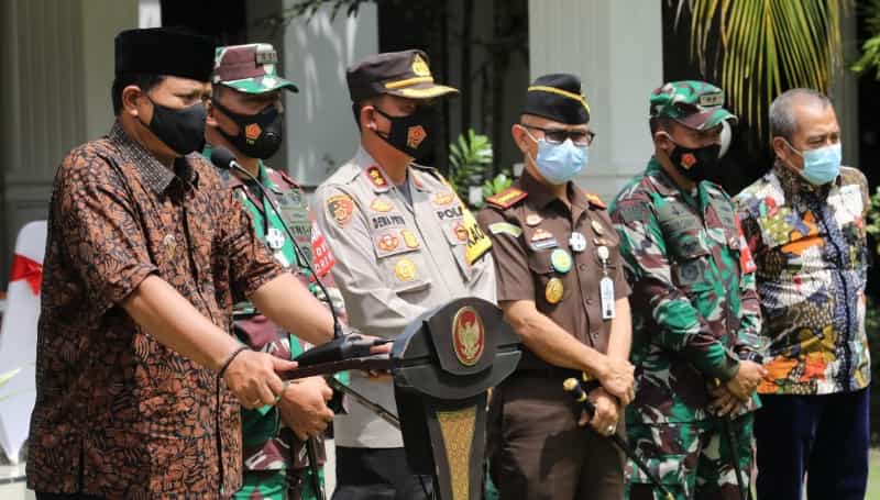 Wali Kota Madiun, H. Maidi bersama Forkopimda memberikan keterangan usai suntik vaksinasi.