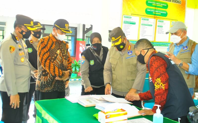 Wali Kota Madiun dan Kapolres Madiun Kota mendampingi Tim Satgas Covid - 19 Pusat meninjau langsung Posko PPKM Mikro Kelurahan Winongo.