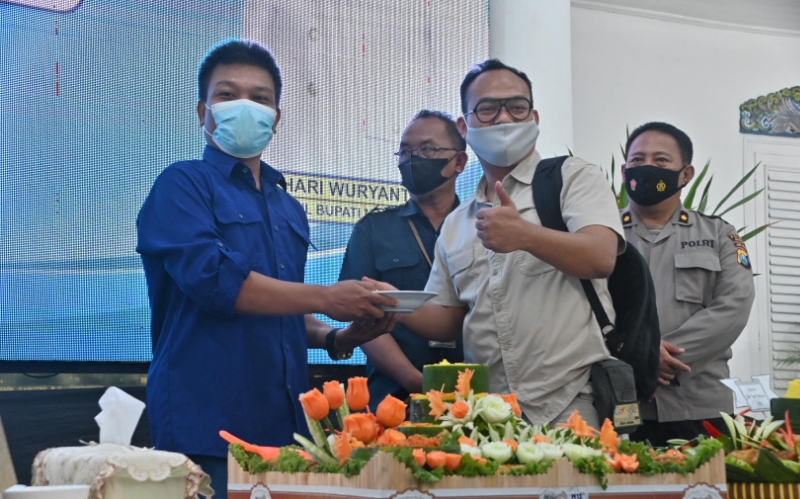Kegiatan tasyakuran tersebut juga diwarnai dengan pemotongan tumpeng oleh Bupati Madiun dan diberikan kepada salah satu perwakilan wartawan.