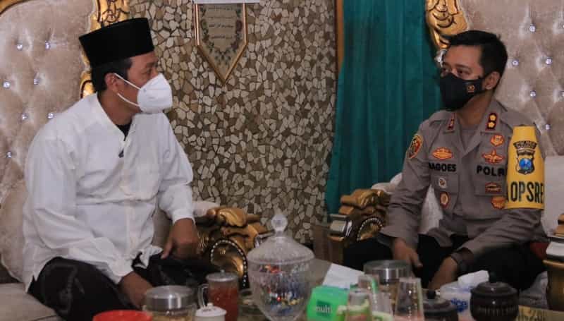 JATIMPOS.CO/KABUPATEN MADIUN - Guna meningkatkan sinergitas sekaligus memperingati hari lahir ke-95 Nahdlatul Ulama, Kapolres Madiun AKBP Bagoes Wibisono, berkunjung ke kediaman Ketua PCNU Kabupaten Madiun KH Ahmad Mirzan Bashari yang juga pengasuh Ponpes Subulul Huda Kembangsawit, Rejosari, Kecamatan. Kebonsari, Kabupaten Madiun, Senin (1/1/2021).