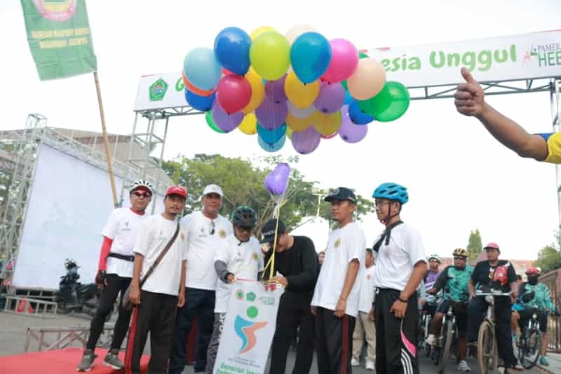 JATIMPOS.CO/PAMEKASAN - Ratusan masyarakat pencinta sepeda mengonthel bareng dari Mandhepah Agung Ronggosukowati bersama Bupati dan Wakil Bupati Pamekasan, Minggu (01/12).