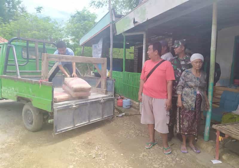 Bantuan yang disalurkan langsung pengusaha rokok dengan didampingi Babinsa setempat, berupa puluhan sak semen dan sejumlah uang tunai.