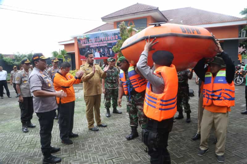 Peserta apel terdiri dari personil TNI, Polri, BPBD, Tagana, Satpol PP, Damkar dan Linmas. Total seluruh tim dalam siaga bencana sebanyak 350 personil. Armada dan peralatan pun telah disiapkan diantaranya truk, perahu karet, 5 motor trail, 5 gergaji mesin dan 4 mesin pompa. Posko berupa tenda pun telah didirikan di halaman kantor BPBD.