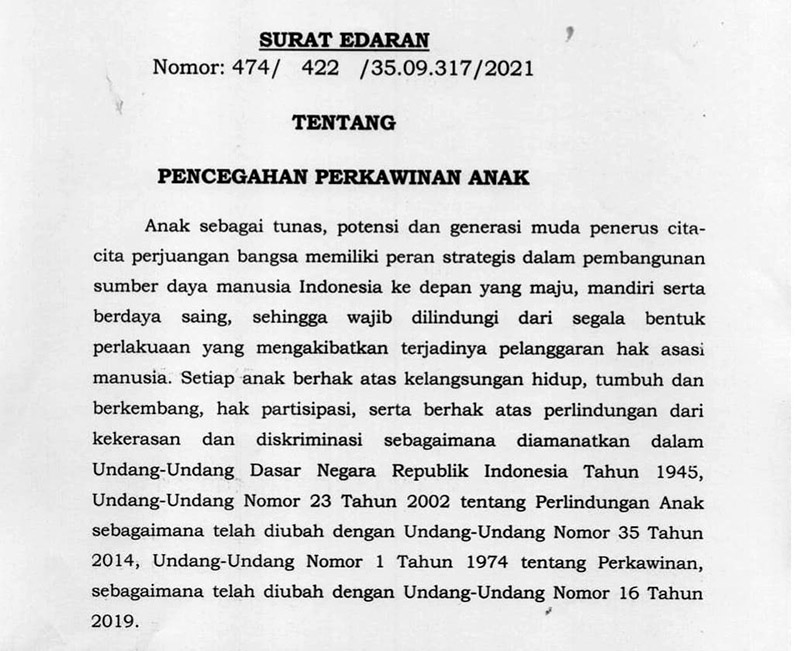 Oleh karena itu, jika usia seseorang belum cukup umur untuk menikah, dengan terbitnya Surat Edaran ini. Dinas Pemberdayaan Perempuan, Perlindungan Anak dan UU Keluarga Berencana (DP3AKB) menyarankan untuk ditunda.