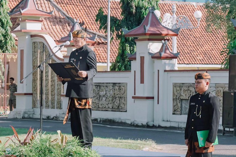 JATIMPOS.CO/PAMEKASAN - Penjabat (Pj) Bupati Pamekasan, Masrukin menjadi inspektur upacara peringatan hari lahir pancasila di lapangan Nagara Bhakti Mandhapa Aghung Ronggosukowati, Sabtu (1/6/2024).