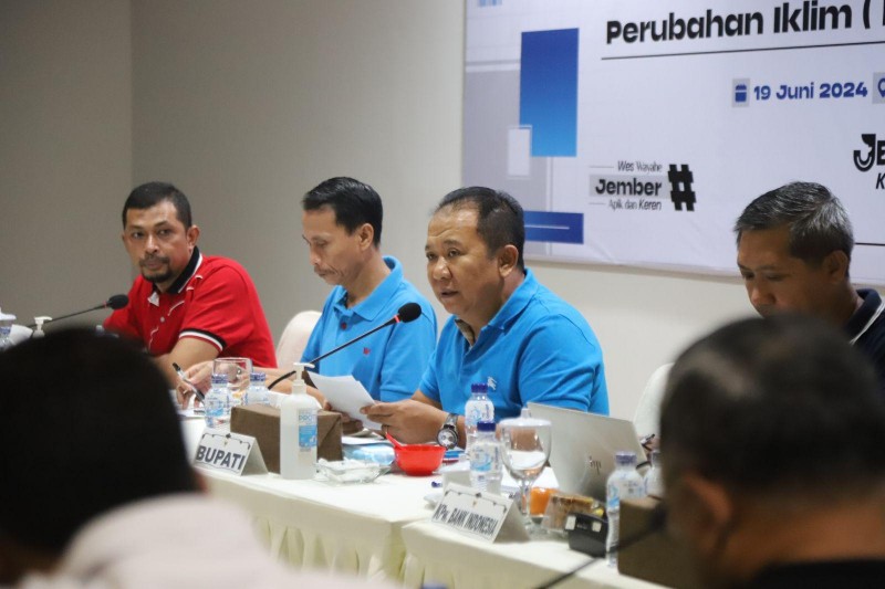JATIMPOS.CO/JEMBER - Bupati Jember Ir. H. Hendy Siswanto ST., IPU., ASEAN Eng., bersama jajaran forkopimda dan OPD terkait melakukan kegiatan rutin Rapat Koordinasi Sinergi dan Kolaborasi mingguan setiap hari Rabo (Si Rambo). Kegiatan tersebut dilaksanakan di Kantor OJK Jember pada Rabu (19/6/2024) pagi.
