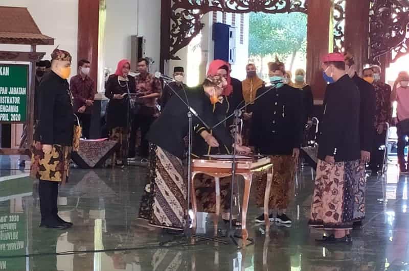 JATIMPOS.CO/PAMEKASAN - Sebanyak 73 pejabat administrator dan pengawas di lingkungan Pemerintah Kabupaten (Pemkab) Pamekasan dilantik dan diambil sumpah jabatannya oleh Bupati Pamekasan, Baddrut Tamam di Mandhepah Agung Ronggosukowati, Senin (27/04).