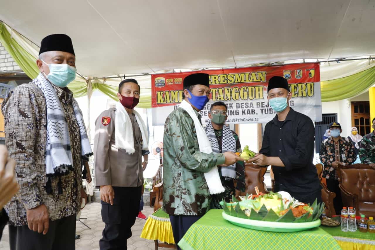 JATIMPOS.CO/TUBAN – Bupati Tuban Fathul Huda didampingi Forkopimda Kabupaten Tuban meresmikan Kampung Tangguh Semeru di Dusun Ngemplak, Desa Bejagung, Kecamatan Semanding, Selasa (09/06/2020).