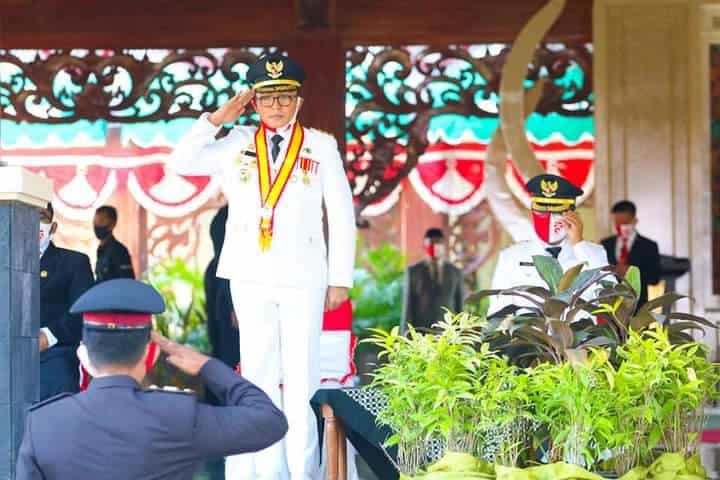 JATIMPOS.CO/PAMEKASAN - Pemerintah Kabupaten (Pemkab) Pamekasan menggelar Upacara Kemerdekaan Republik Indonesia ke-75 di Mandhapa Agung Ronggosukowati, Pamekasan, Jawa Timur.