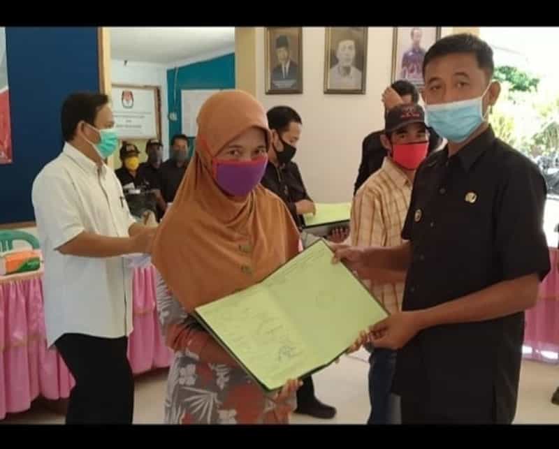 JATIMPOS.CO//BANYUWANGI- Program sertifikat nasional atas kepemilikan hak tanak milik rakyat atau yang dikenal PTSL (Pendaftaran Tanah Sistematis Lengkap), Selasa (25/8/2020) dibagikan kepada warga Desa Tegaldlimo Kecamatan Tegaldlimo, Banyuwangi.