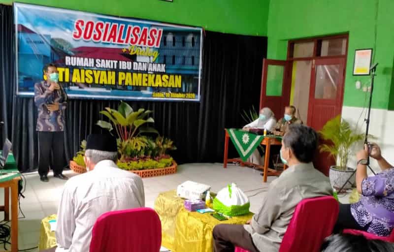 JATIMPOS.CO/PAMEKASAN - Klinik Siti Aisyah menggelar sosialisasi dan dialog prihal rencana peningkatan status Klinik menjadi Rumah Sakit Ibu dan Anak, di aula SMP Muhammadiyah, Jalan Raya KH Amin Jakfar, Pamekasan.