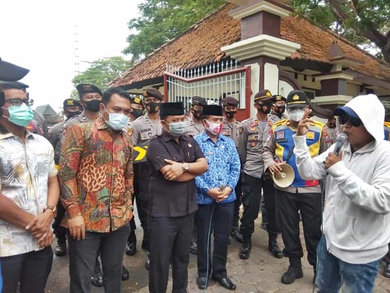 Saat aksi berlangsung massa demo ditemui oleh Wakil Ketua DPRD Pamekasan Harun Suyitno, Wakil Ketua Komisi IV Khairul Umam dan Anggota Komisi IV Alfian Rhomadani serta Plt Dinsos Pamekasan Moch Tarsun.
