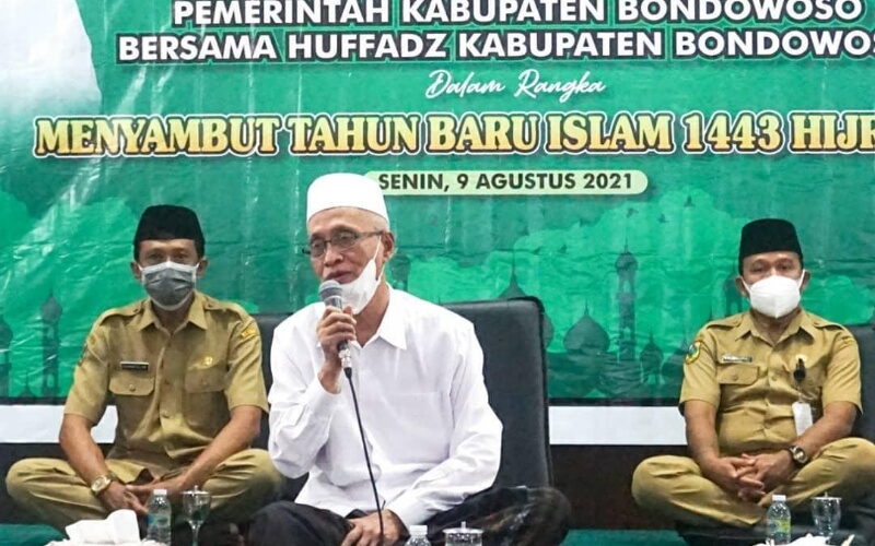 JATIMPOS.CO/BONDOWOSO - Pemerintah Kabupaten (Pemkab) Bondowoso menggelar Khotmil Quran dan Istighosah menyambut Tahun Baru Islam 1443 H di Pendopo Bupati Bondowoso, Senin (9/8/2021) malam.