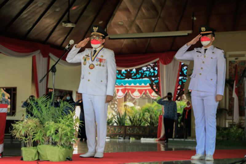 JATIMPOS.CO/SUMENEP - Bupati Pamekasan, Baddrut Tamam menjadi inspektur upacara memperingati Hari Ulang Tahun (HUT) ke-76 Republik Indonesia (RI) di Lapangan Mandhapa Aghung Ronggosukowati, Pamekasan, Madura, Jawa Timur, Selasa (17/8/2021).