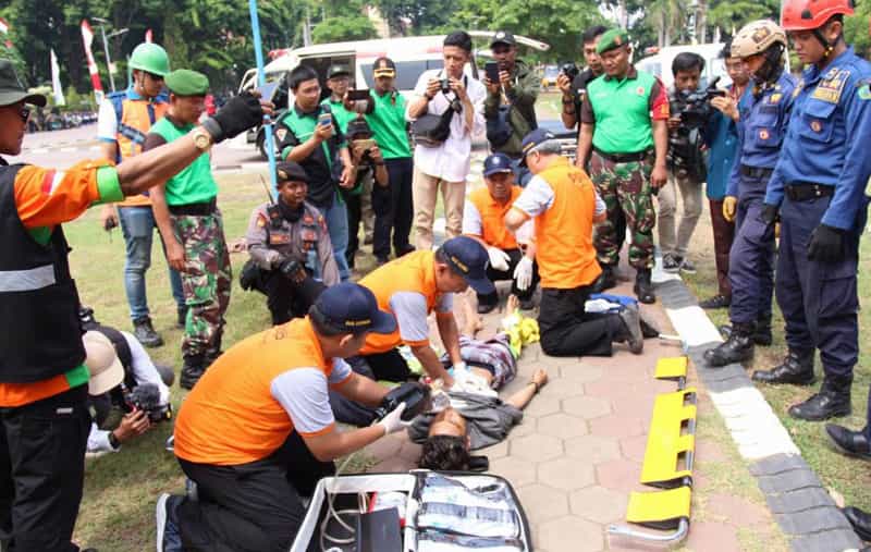 JATIMPOS.CO/SIDOARJO - Badan Penanggulangan Bencana Daerah (BPBD) Pemkab Sidoarjo menyiagakan 200 personil tanggap bencana. Apel Siaga Tanggap Bencana ini dipimpin Bupati Sidoarjo, Saiful Ilah di Alun-alun Sidoarjo, Rabu pagi (04/12/2019).