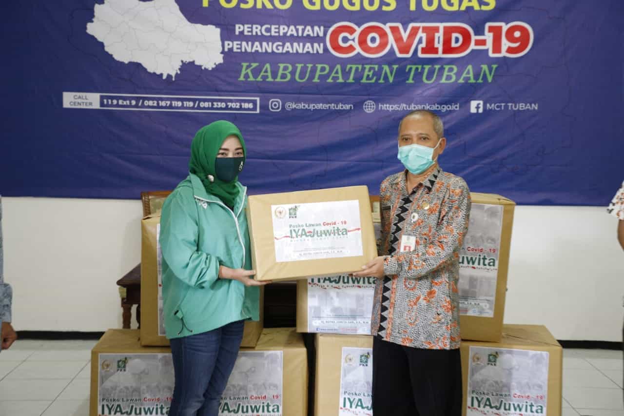 JATIMPOS.CO/TUBAN – Ratna Juwita anggota DPR RI Fraksi PKB menyerahkan bantuan alat pelindung diri (APD). Bantuan diberikan kepada gugus tugas penanganan Covid-19 Pemkab Tuban, Jum’at (17/04/20).