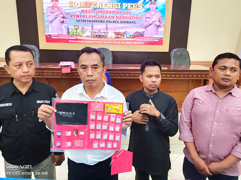 JATIMPOS.CO/JOMBANG - Berbagai macam modus dilakukan pelaku pengedar narkoba jenis sabu ini yang terbilang unik, betapa tidak. Tersangka yakni Samsul Arifin (31 tahun) seorang tukang baner selundupkan sabu dalam kemasan jajan dan permen untuk mengelabui petugas.