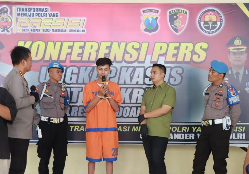 JATIMPOS.CO/KABUPATEN MADIUN - Pelaku pembunuhan Miftachul Barokah (23), perempuan asal Ponorogo yang bekerja sebagai pemandu lagu di kamar kos - kosan di Kelurahan Bangunsari, Kecamatan Dolopo, Kabupaten Madiun akhirnya berhasil ditangkap Tim Jatanras Satreskrim Polres Madiun di Kota Pekanbaru, Provinsi Riau, Sumatera, Senin (10/7/2023) dini hari.
