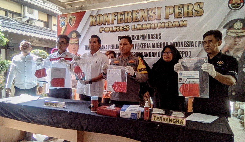 JATIMPOS.CO/LAMONGAN - Satuan Reserse Kriminal (Satreskrim) Polres Lamongan berhasil ungkap kasus tindak pidana perdagangan orang (TPPO) dan perlindungan Pekerja Migran Indonesia (PMI).
