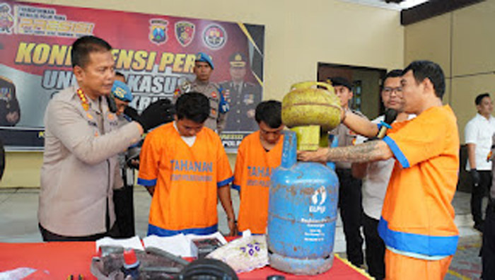JATIMPOS.CO/SIDOARJO - Satreskrim Polresta Sidoarjo melalui Polsek Sukodono berhasil meringkus 3 pelaku pengoplos LPG subsidi, namun 1 pelaku masih dalam pencarian. Selasa (27/6/2023).