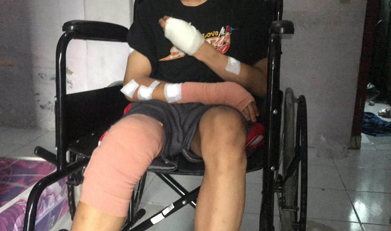 JATIMPOS.CO/SAMPANG - Eko warga Jalan Imam Ghozali, Kelurahan Gunung Sekar, Kecamatan/Kabupaten Sampang, harus menahan rasa sakit saat hendak melapor ke Mapolres Sampang, Jumat (28/10/2022) siang.