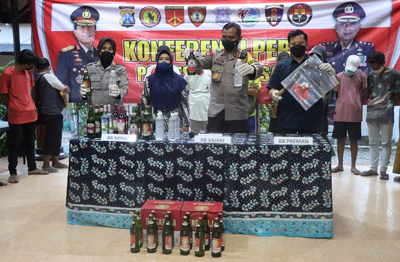 JATIMPOS.CO/PAMEKASAN - Menjelang Bulan Suci Ramadhan 1443H/2022, Polres Pamekasan menggelar konferensi pers hasil giat Ops Cipta Kondisi (Cipkon) razia penyakit masyarakat (Pekat) bertempat di Gedung Joglo Joko Tarub Polres Pamekasan, Sabtu (2/4/2022).