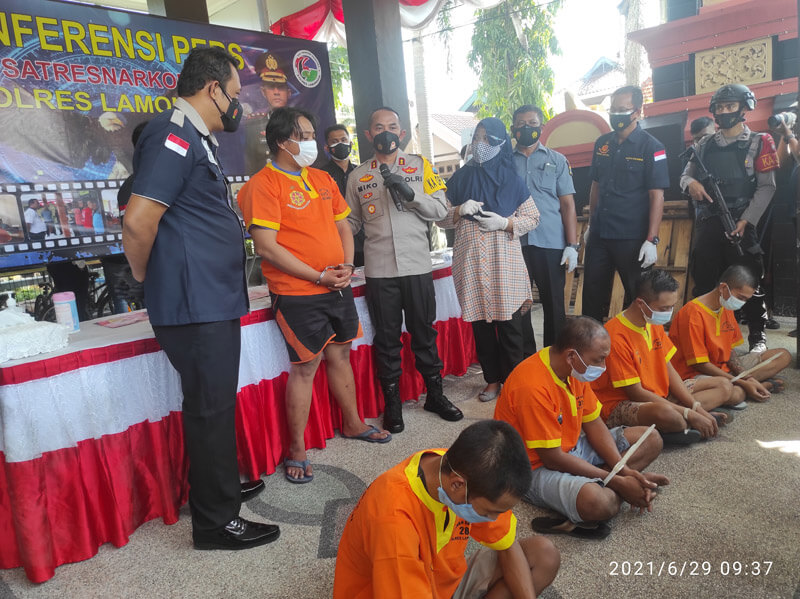 JATIMPOS.CO/LAMONGAN - Satresnarkoba Polres Lamongan terus menumpas peredaran narkoba yang beredar di masyarakat, kali ini berhasil amankan sabu - sabu seberat 135, 48 gram, 138 butir dobel L dan ganja seberat 1 kilogram beserta 7 tersangka.