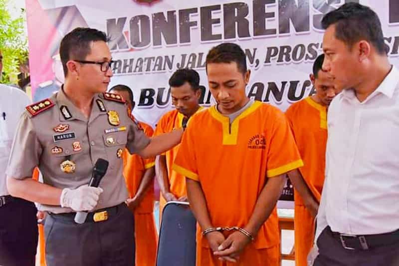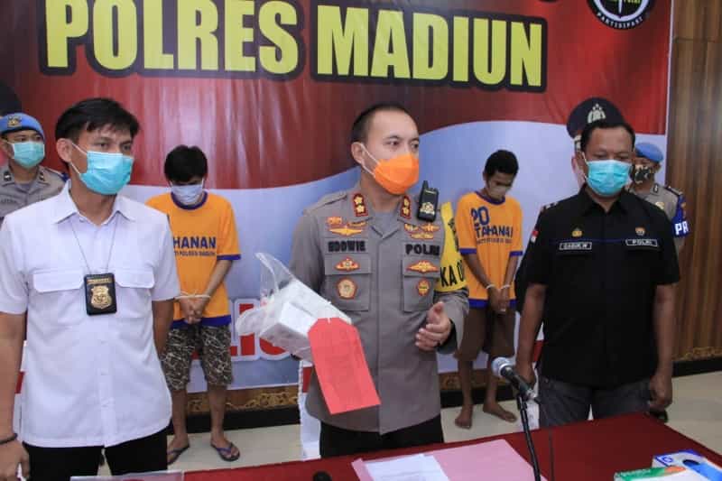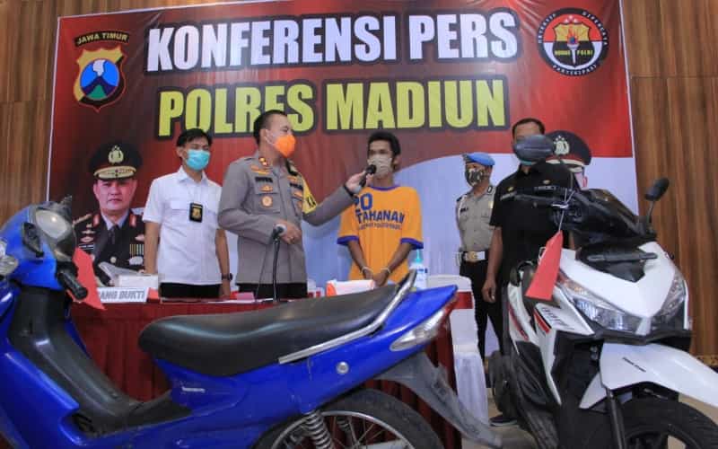 JATIMPOS.CO/SAMPANG - Samhuji (40), pria yang berprofesi sebagai Kepala Desa (Kades) Nyeloh, Kecamatan Kedungdung, Kabupaten Sampang, ditetapkan sebagai tersangka oleh Polres Sampang atas kasus pencurian 4 buah aki bakhoe kendaraan alat berat di pertambangan Desa Buker, Kec. Jrengik, Sampang pada 11 Juni 2020 lalu.