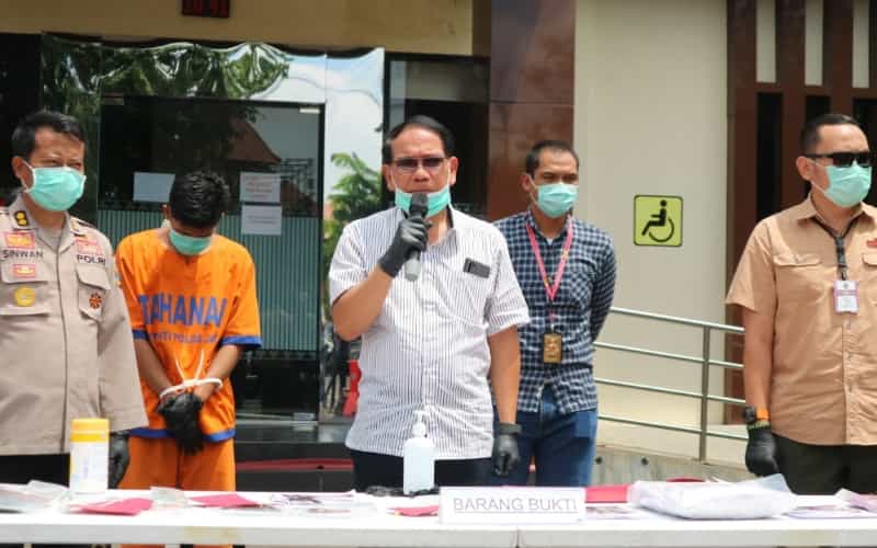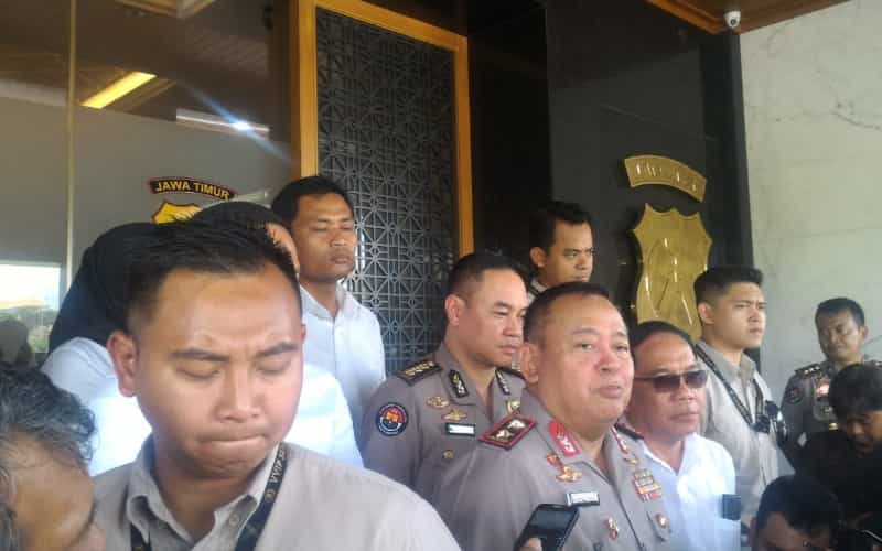 JATIMPOS.CO/SURABAYA - Kapolda Jatim Irjen Pol Drs. Luki Hermawan, didampingi Kabidhumas Polda Jatim Kombes Pol Trunoyudo Wisnu Andiko, dan Dirkrimum Kombes Pol Pitra A. Ratulangie, membeberkan perkembangan kasus pencabulan yang dilakukan pelaku berinisial H (57) oknum pendeta Gereja Happy Family.