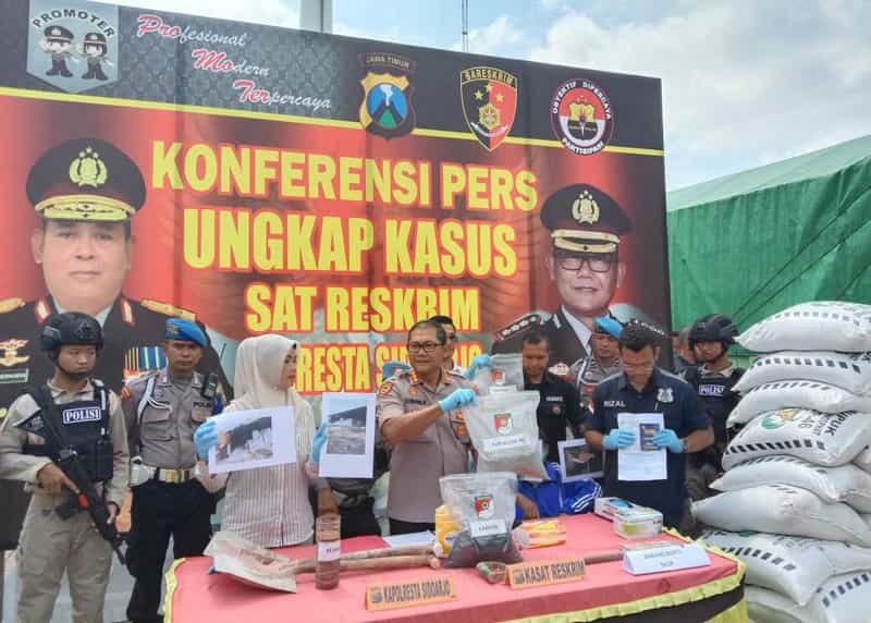 JATIMPOS.CO/SIDOARJO - Polresta Sidoarjo melalui unit pidsus satreskrim berhasil menangkap produsen pupuk palsu merk TSP 46 sebanyak 22 Ton di Jalan Arteri Porong Sidoarjo.
