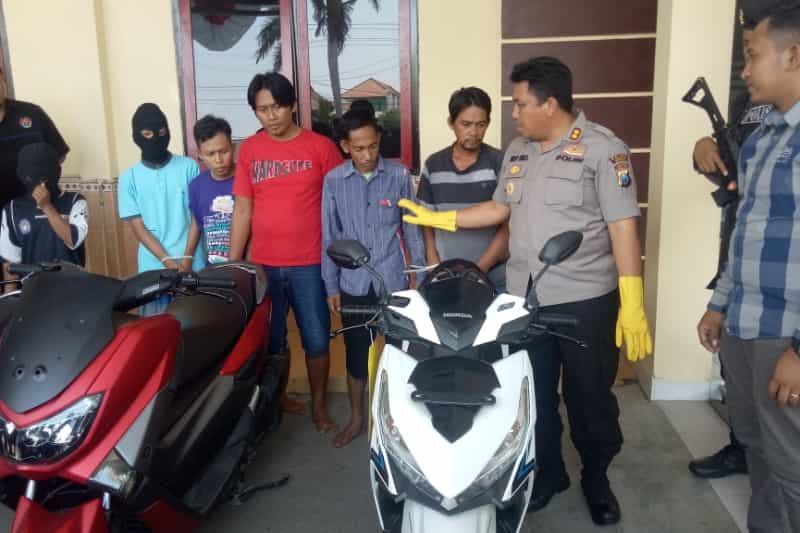 JATIMPOS.CO/SAMPANG - Satuan Resort Kriminal (Satreskrim) Polres Sampang berhasil mengamankan tujuh tersangka pencurian kendaraan bermotor (Curanmor). Barang Bukti (BB) yang berhasil diamankan sebanyak 3 unit Sepeda Motor, HP, sejumlah uang dan 1 unit kunci T milik tersangka.