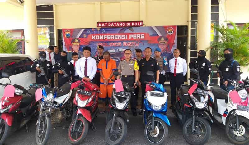 JATIMPOS.CO/BATU - Muhammad Khamim (29) warga Dusun Binangun Kota Batu, harus mendekam dibalik jeruji besi akibat ulahnya sendiri. Berkat kepiawaiannya ia berhasil menggadaikan 9 unit sepeda motor dan 1 unit mobil yang disewanya.