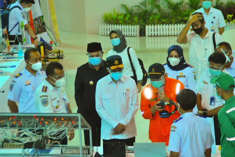 Wali Kota Madiun, H. Maidi mendampingi Menteri Perhubungan RI, Budi Karya Sumadi meninjau hasil penelitian dan inovasi teknologi perekeretaapian yang bisa dikerjakan di Kampus PPI Madiun.